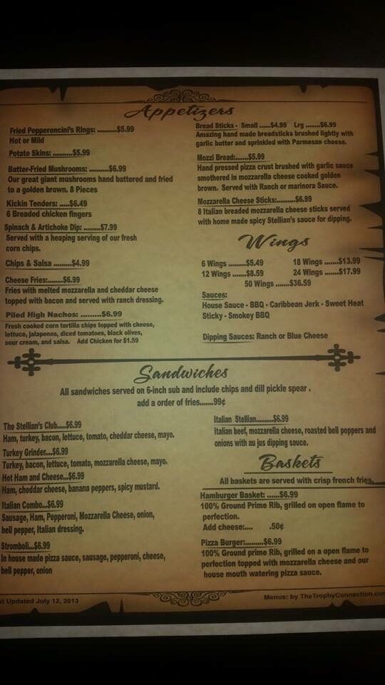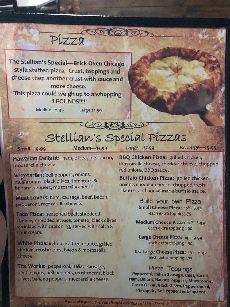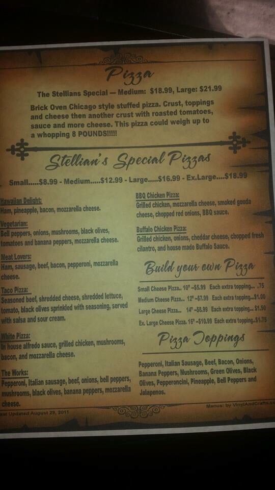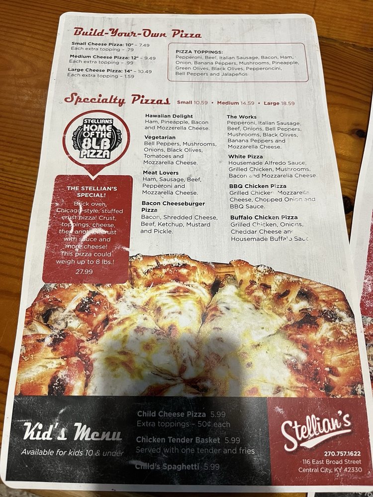 Stellian's is a charming Italian restaurant located in Central City, KY, offering a variety of delicious dishes. This cozy spot is perfect for a casual meal with friends or family, with options for takeout, outdoor seating, and even free Wi-Fi. The menu boasts many vegetarian choices, catering to different dietary preferences. The restaurant also accepts credit cards and Apple Pay for convenience. With a moderate noise level and TV for entertainment, Stellian's is a great place for groups and kids alike. The location also offers bike parking for those who prefer eco-friendly transportation. Overall, Stellian's provides a welcoming atmosphere and delectable Italian cuisine for all to enjoy.